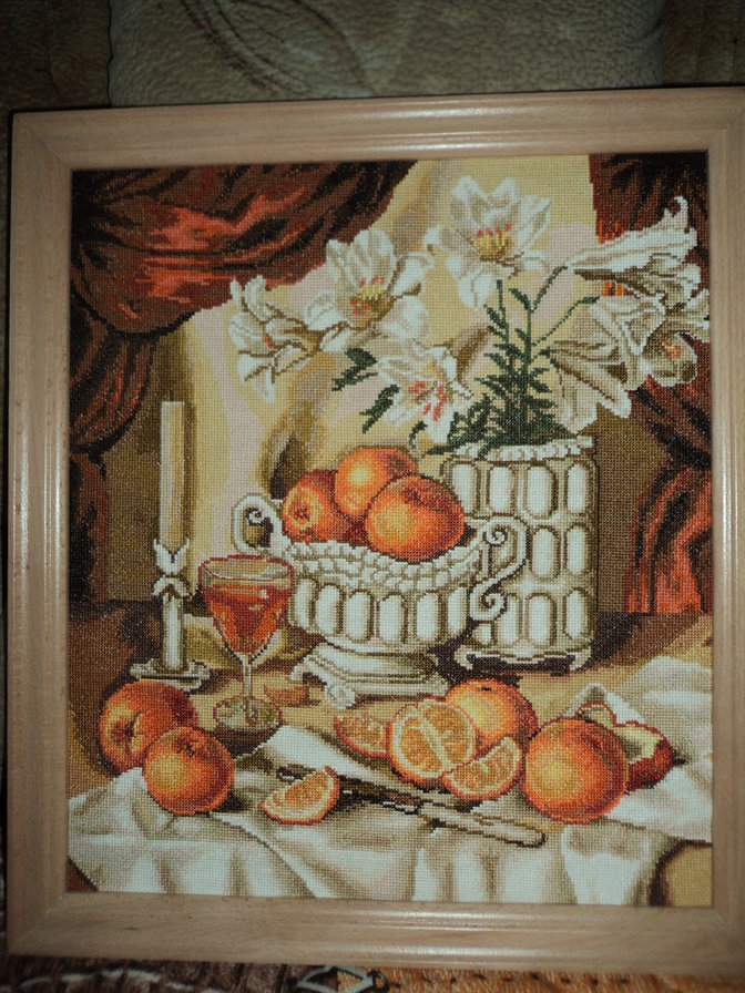 Мне такие натюрморты - яркие, сочные - нравятся больше "голландцев". Детализация чудесная. В общем - отличная картина!