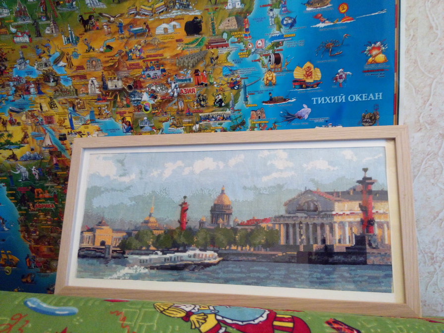 Работа хороша, но меня сразу привлекала не она, а карта на заднем плане. Такая яркая и не обычная, класс!!! Вот бы такую в нашу детскую. )))