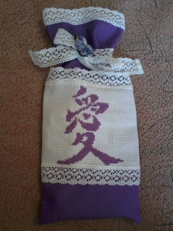 Канва Аида 14, нитка Гамма, ткань, вязанное кружево, цветок "Сирень". Подарок сестре на 8 марта.