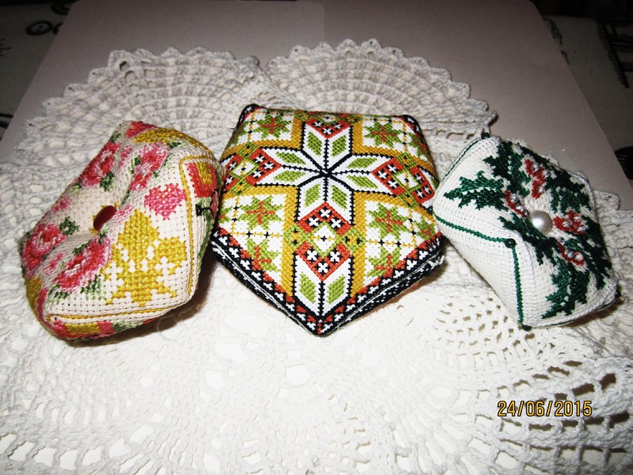 Это бискорню - игольницы. одна моя подруга делает их маленьких размеров для украшения новогодней елки. Получается красиво, но делать их - очень трудоемкая работа и занимает много времени.