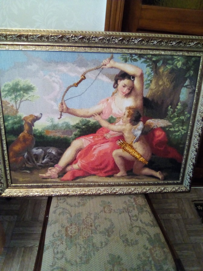 Нравится! Очень серьезная работа, соответственно и результат прекрасный. Жаль, что совсем нет информации о схеме, размере картины, времени вышивания и т.д., мне это очень интересно, думаю и другим вышивальщицам тоже