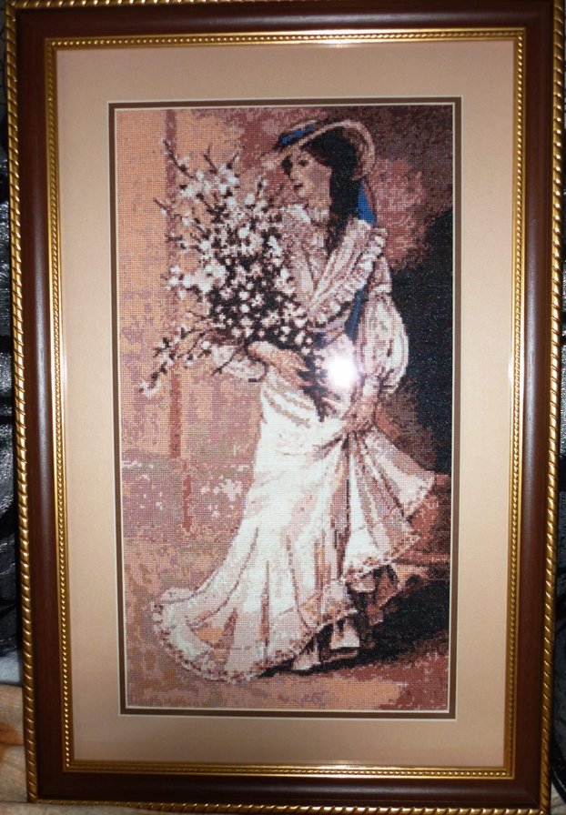 Схему нужно было чуть-чуть доработать, убрать пятна, и разводы. Но в целом вышивка смотрится довольно красиво. По крайней мере, на лице и на руках цвета ровные, резких переходов нет. Работа не безукоризненная, конечно, но на твёрдую "четверку" тянет!