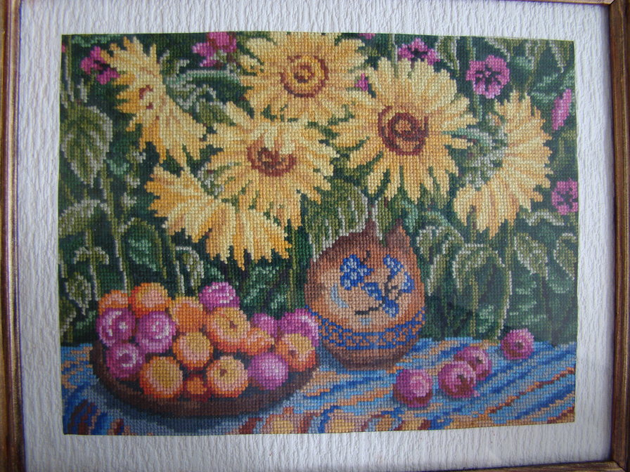 Журнал "Чудесные мгновенья" 2005 г. Схема символьная,черно-белая. Нитки "Гамма". Оформляла сама в обычную рамку из магазина.Покрыла дерево акриловой бронзовой краской. Так называемое "паспарту"-остатки обоев. Подарено несколько лет назад хорошему человеку. Осталось фото на компе.