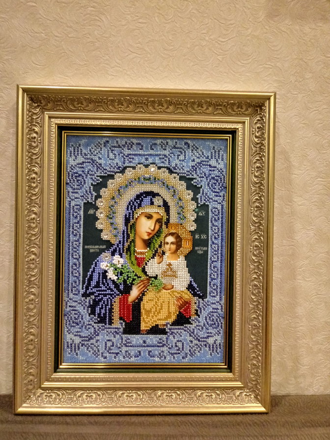 Никогда не думала, что буду вышивать икону. Но когда увидела эту, то как будто сердце распахнулось. Вышила себе к дню рождения.