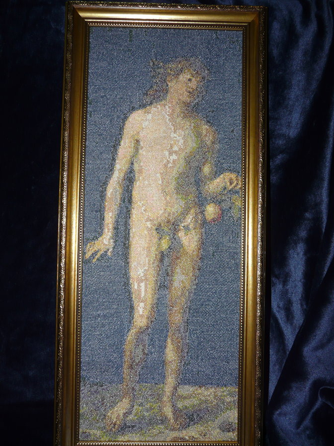 создается впечатление человека пораженного псориазом. Извините, затрачено много времени на вышивку и материальных ресурсов, но .... мне результат не нравится