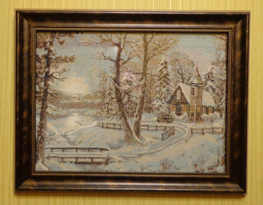Очень красивая картина! Удачный пейзаж: несмотря на суровую зиму он кажется таким уютным и домашним!!!