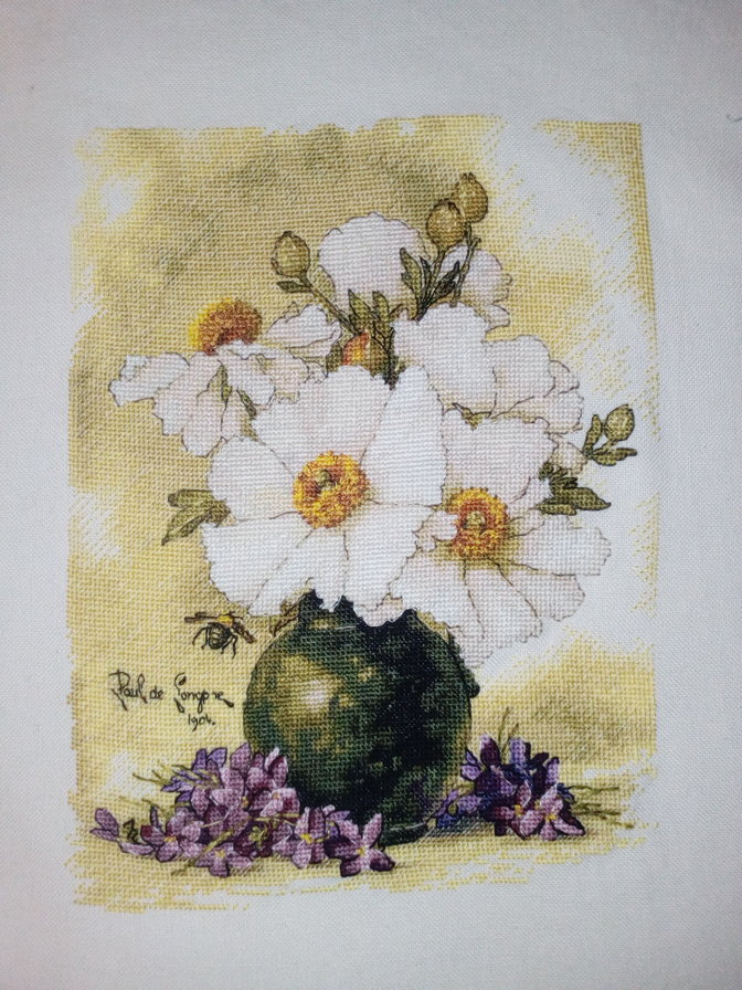 Букетик мне Ваш понравился, а комментарий к нему насмешил. Если Вам не нравятся эти нитки (сама я даже не представляю, что это такое), не нравится кайма, разве нельзя было их заменить? Или это был готовый набор? А картинка получилась очень даже симпатичная. Как здесь отметили передо мной - повеяло летом.
