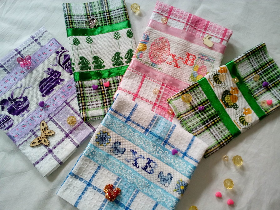 Решила в этом году "порадовать" своих близких вот такими полотеньчиками к пасхе. Одно уже подаренно, так как человек живёт за 200 км. от нас и на следующей неделе не приедет.