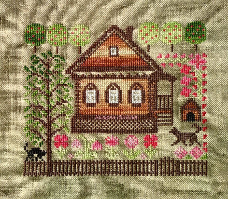 Вышито на льне 32 каунта, нитками ДМС (6 цветов); размер готовой вышивки 15х12,5 см. Схему сама делала.