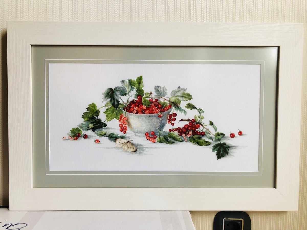 Работа по оригинальному набору от "Luca-S": канва Аида 18, нитки Anchor, 38 цветов. Мне самой очень нравится оформление, спасибо девочкам из багетки!
