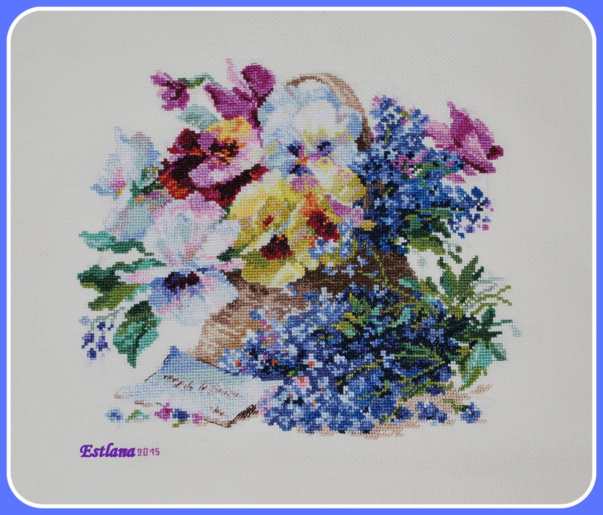 Набор от "Алиса" 29 х 25 см, 35 цветов, 7 блендов. Вышита в 2015 г.