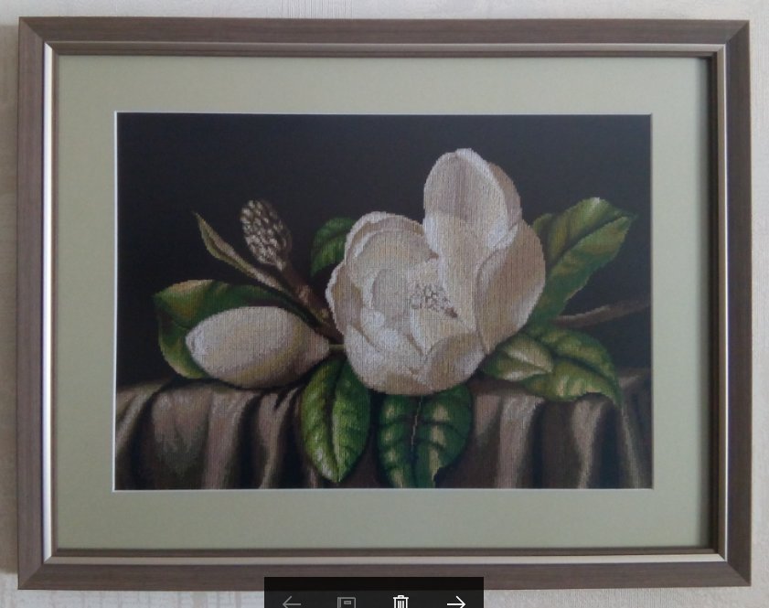 Нина. Все ваши работы прекрасны. У них очень элегантная и хорошо подобранная рамка. И эти магнолии ... просто чудо! Я думаю, переводчик компьютера хорошо переводится. Я знаю язык с юных лет.