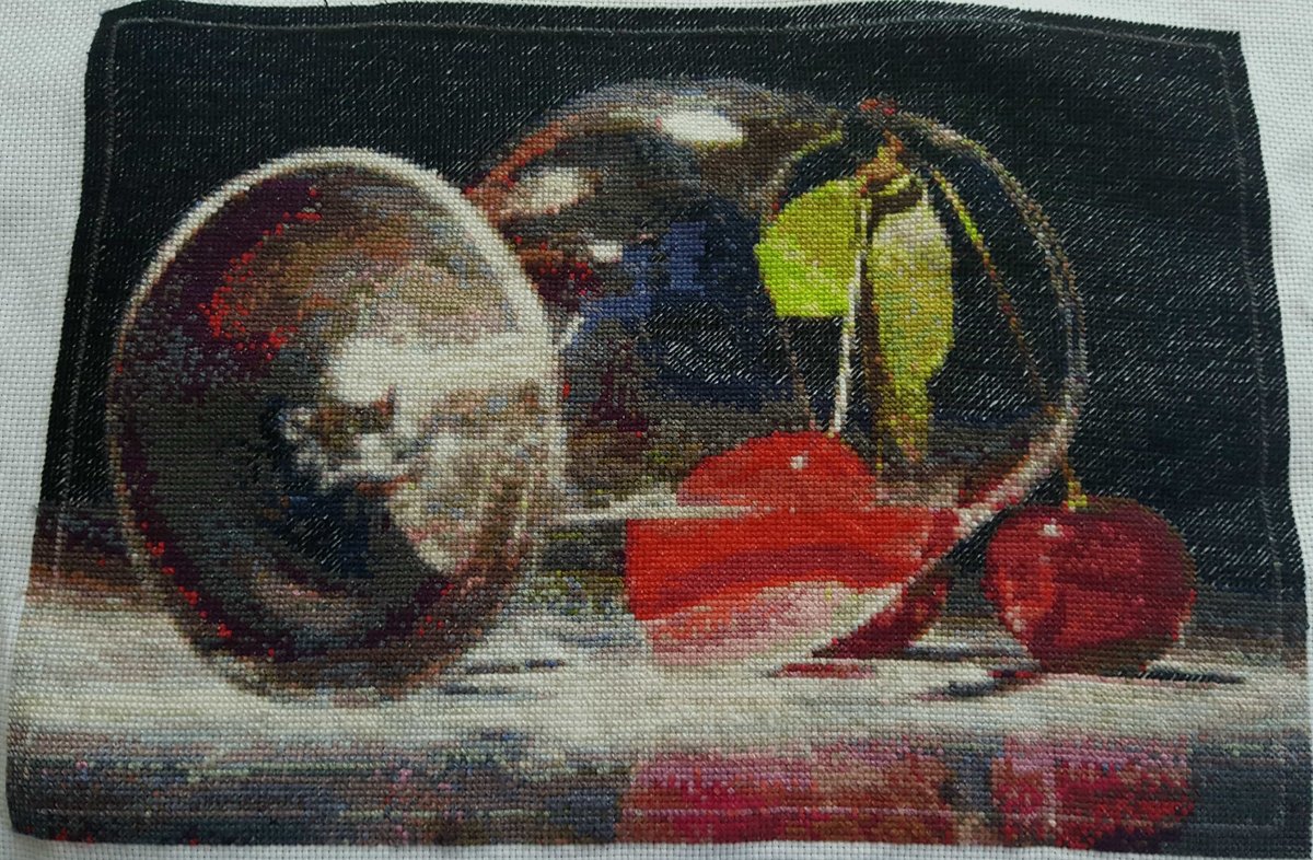 Работа на 14 канве. Схему скачала с igolki.net. ужаснейший прогон. НО. Я не люблю бросать начатое и 18 год у меня год завершения всех работ. Осталась еще одна. Черный фон вышит полукрестом в 3 нити а всё остальное крестом в 2 нити.