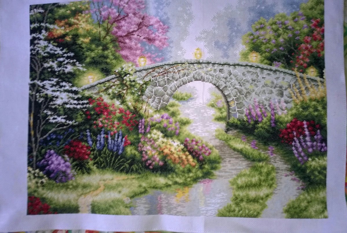 Работа из корейского набора очень понравились матерьялы.Размер готовой 92*68см цветов 46