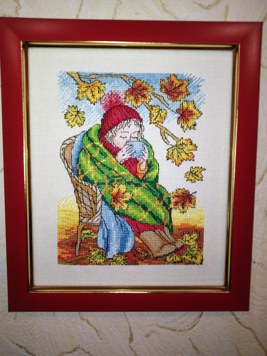 Робота вышита на канве Мурано Лугана 32 каунта, 26 цветов и 1 бленд. Нитки СХС подбором. Начала вышивать еще в период прекраснейшей, наитеплейшей осени, что выдалась в 2018. Однако канва оказалась слишком мелкой для меня, процесс затянулся..Изломала 12 игл на такой маленькой работе - загадка для меня. Результат нравиться, висит на работе.