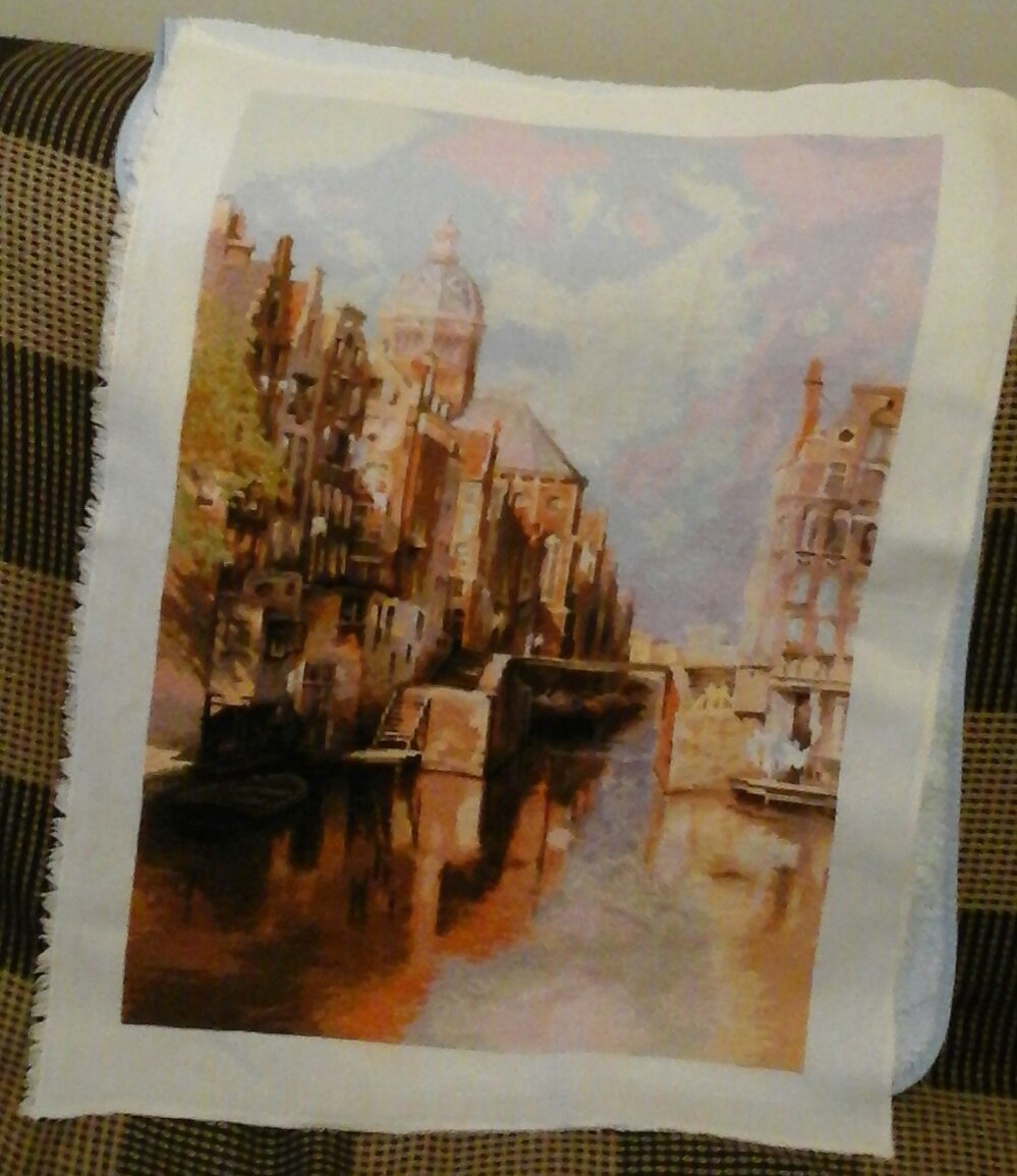 Вышивка крестом по набору "Риолис"-"Амстердам.Канал Аудезейтс Форбургвал" по мотивам картины И.Клинкенберга, всего цв.29, разм.гот.раб.40*60см,-вышита на заказ.