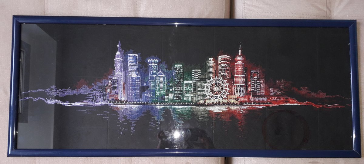 Картина красивая, а Вы не пробовали при оформлении ставить стекло антиблик. Под таким стеклом вышивка сохраняет свою объёмность и красоту.
