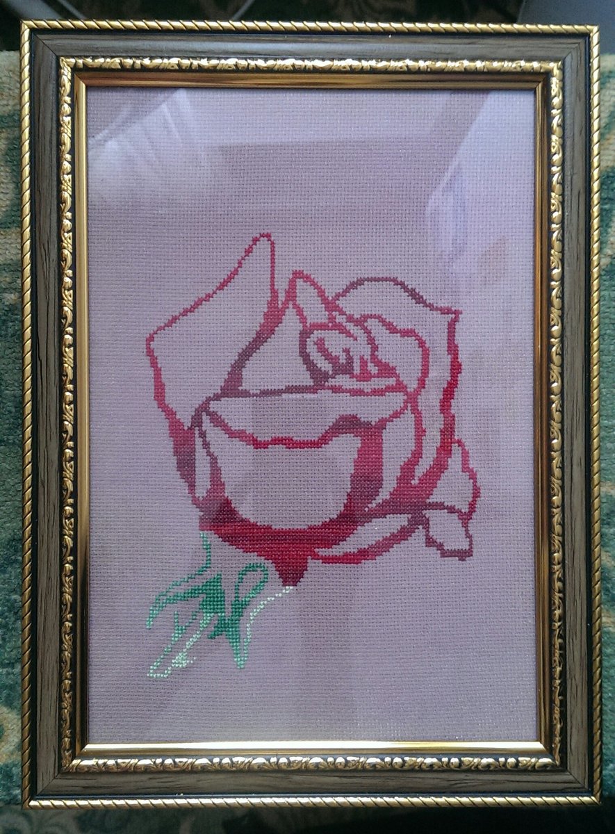 Роза вышита меланжевыми нитками