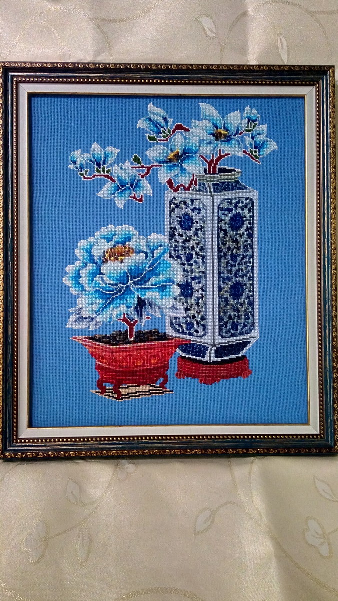 "Китайская ваза" 200х270 крестиков,Аида14, нитки СХС.