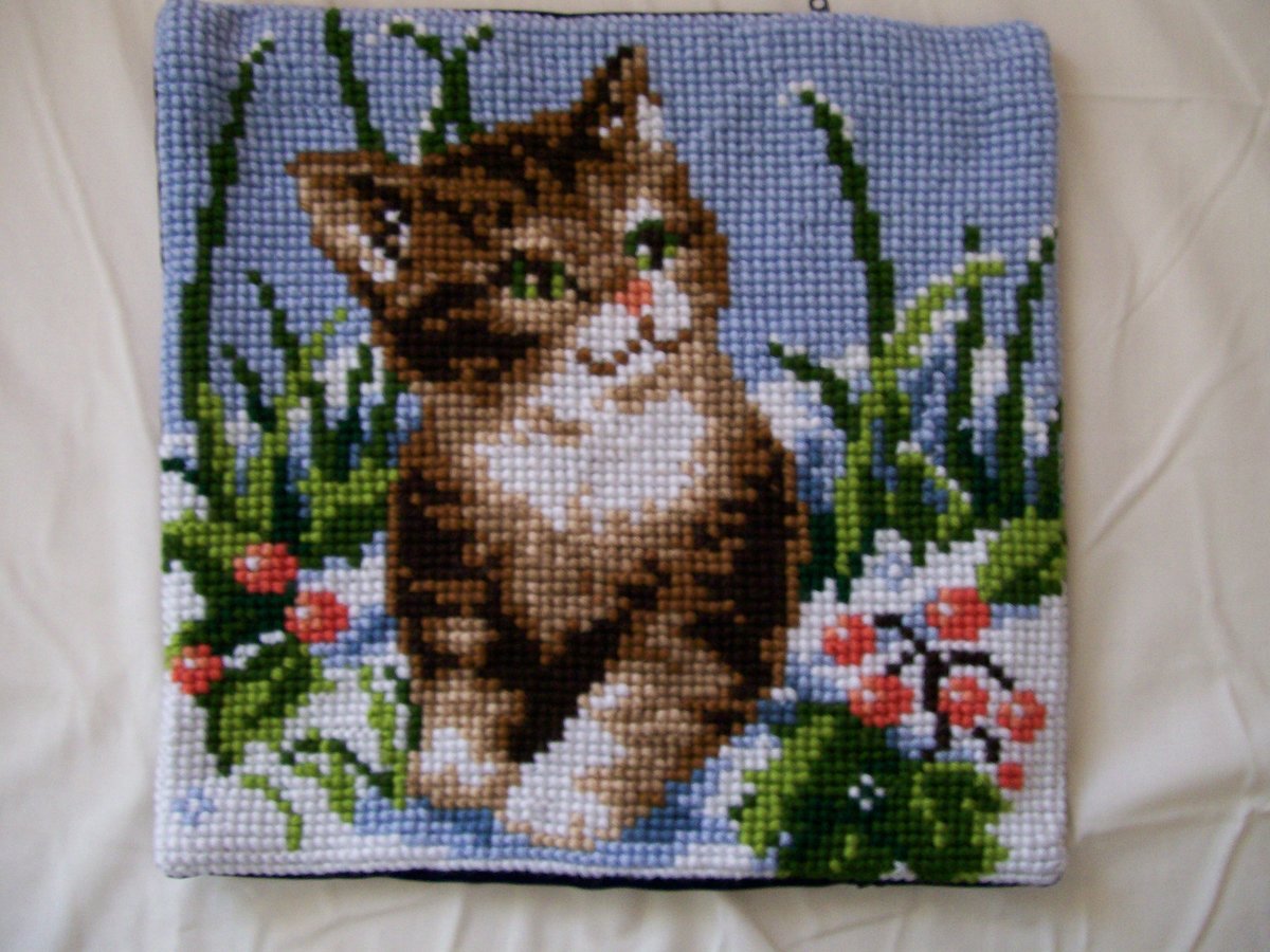 Poduszka kot.Wyszyta włóczką. Rozmiar 40/40 cm.