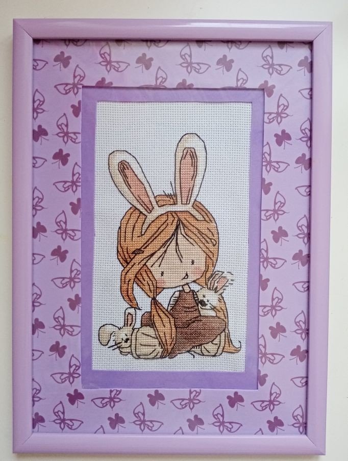 Вышивка «Девочка с зайчиками»