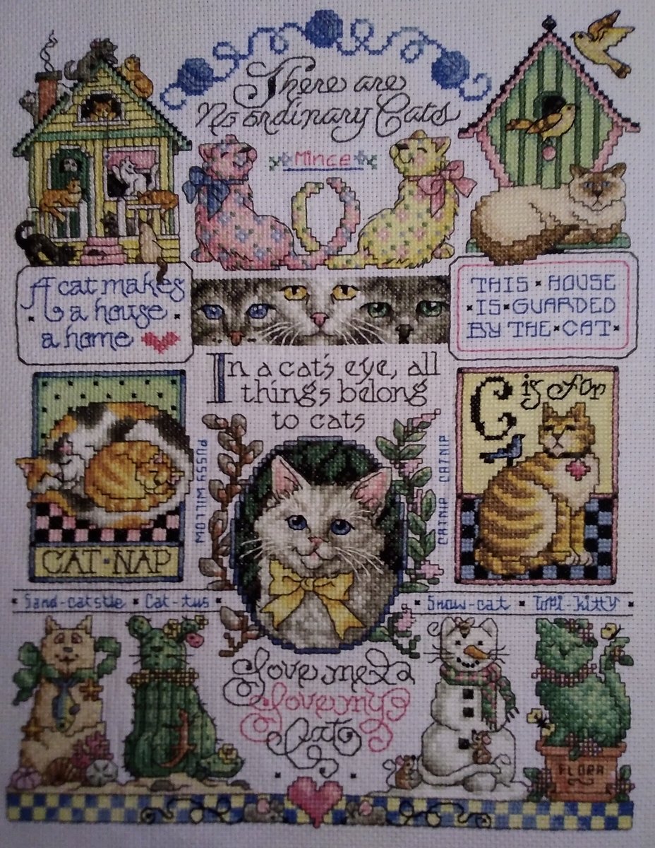 Работа выполнена по набору китайской фирмы FISX CROSS STITCH. Это фактически копия семплера от фирмы JANLINN. Размер готовой работы примерно 35 х 43 см. Канва 11 каунта, нитки хлопчатобумажные, вышивалась в 3 нити.