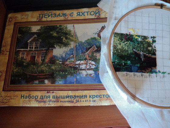 Вышивка «пейзаж с яхтой»