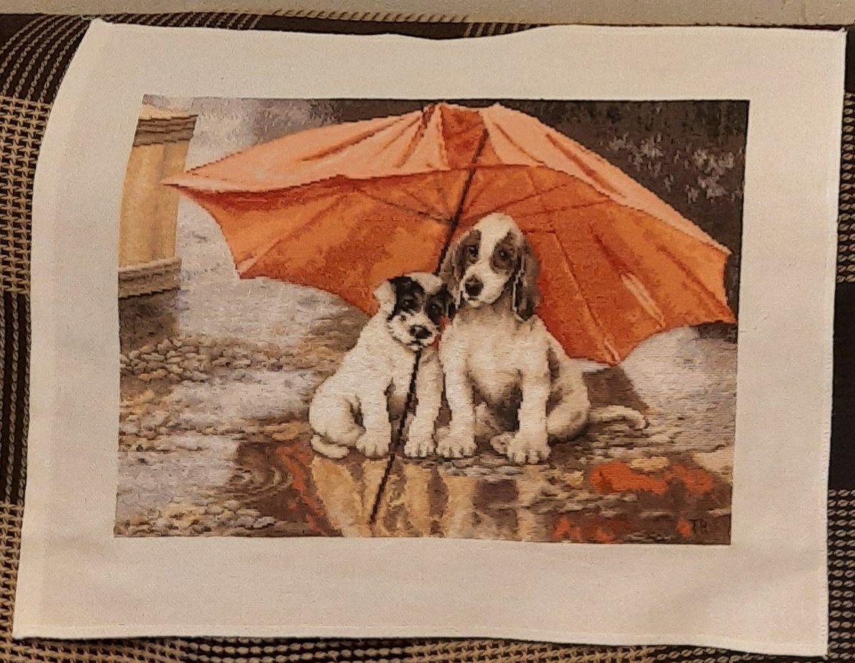 Моя новая творческая работа: вышивка крестиком от произ."Золотое руно",набор снят с поизв.,НЛ-024 "Под дождем", на канве ном18, мулине "Madeira" (Германия), всего цв.26 разм.гот.раб. 27,4*37,4см-вышита в подарок родному и близкому человеку.