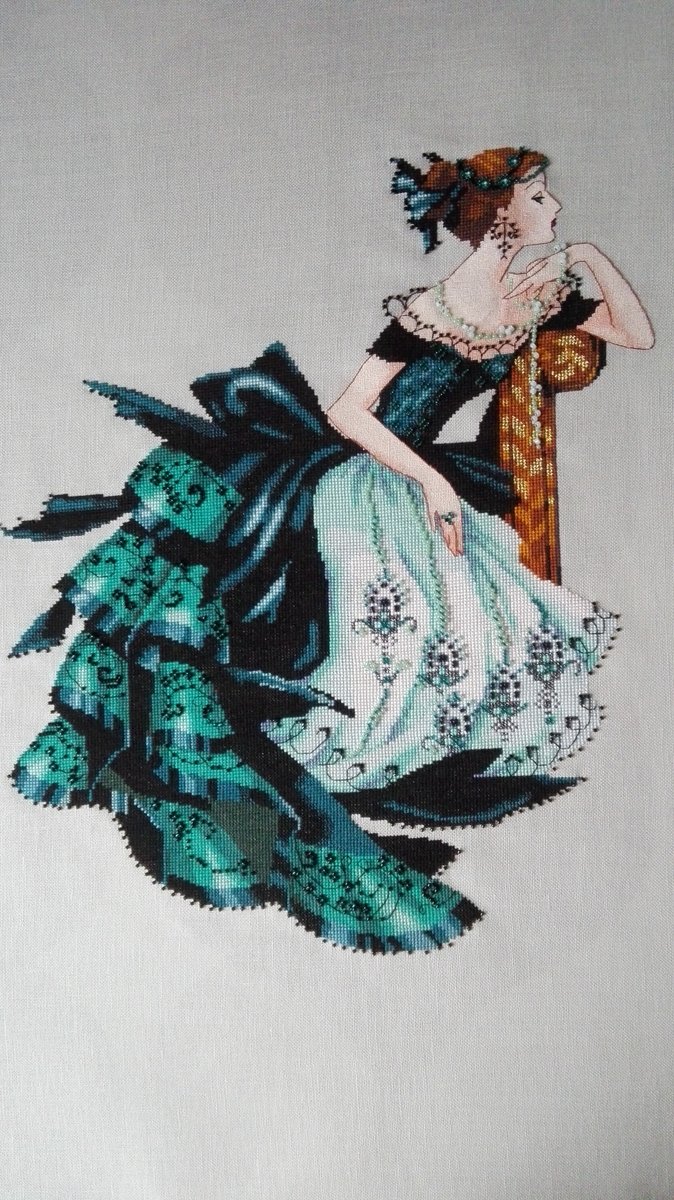Nitki DMC, Biser Mill Hill, osnova Star Sapphire Linen 32 count.Telo vysivala petitom, tiomnyje cveta meniala na bolee svetlyje i blendy.