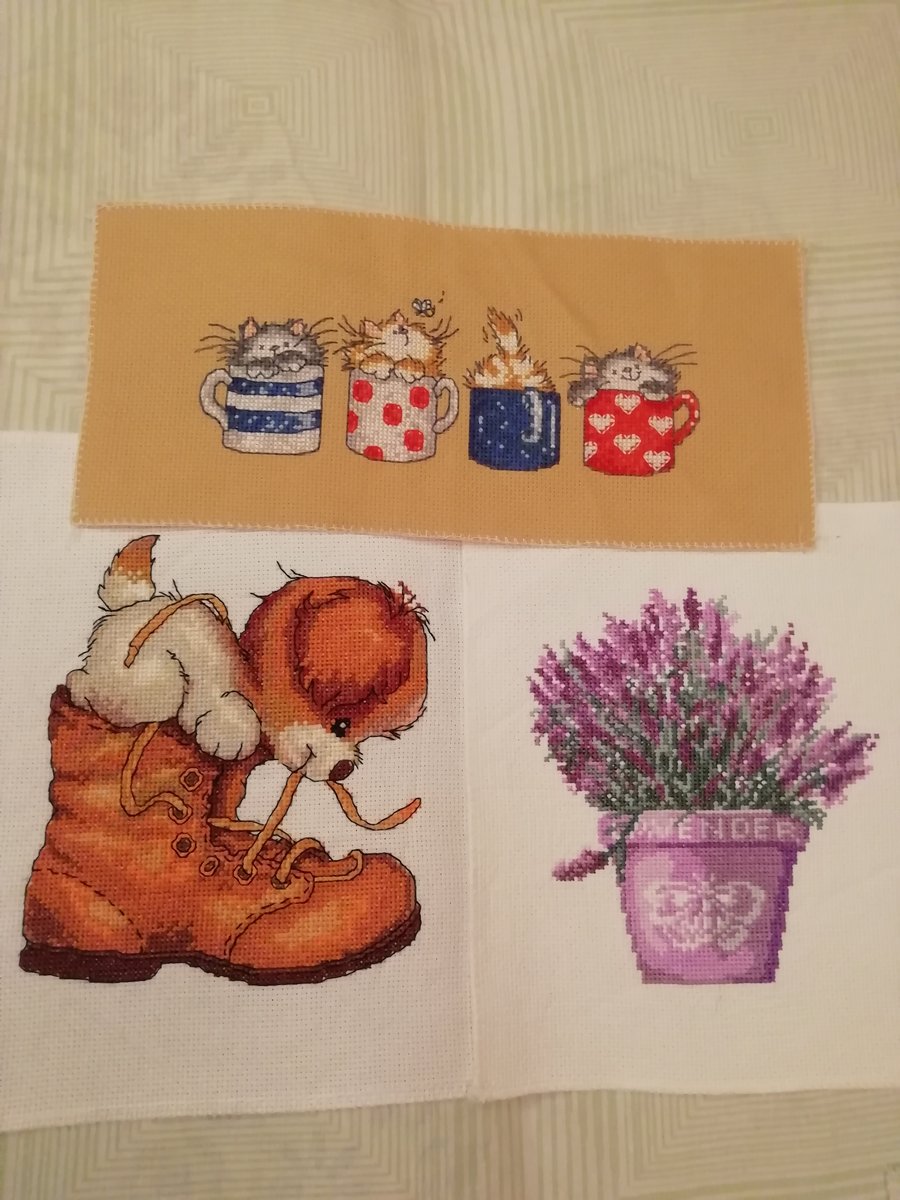 Вышивка «Три миниатюры: котики, щенок, лаванда»
