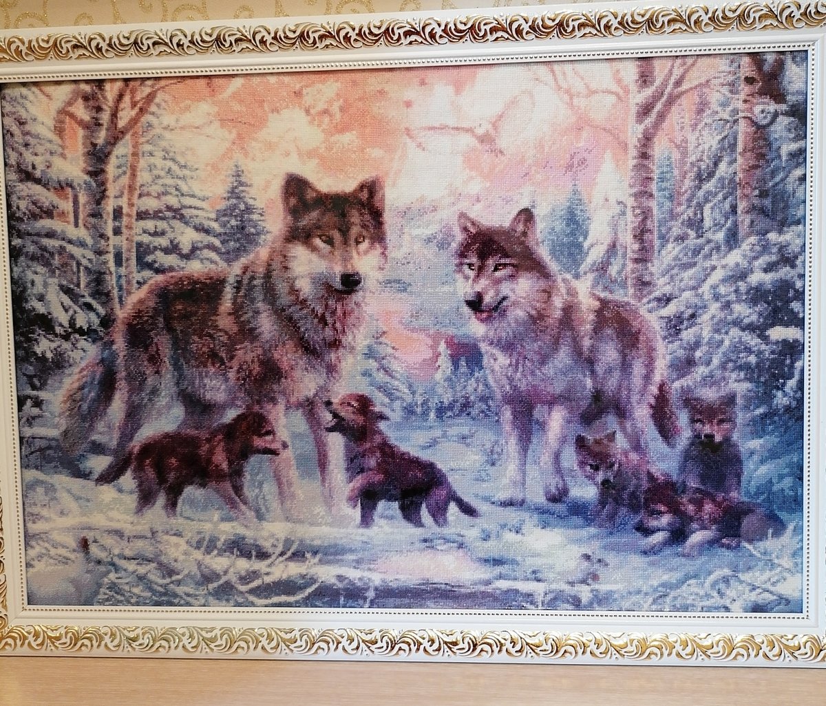 Очень красиво. Я тоже хотела вышить волков. Выбирала между этой работой и другой, летней. Выбрала все же летнюю. По какой схеме вышивали ? Работа выполнена очень хорошо, оформлена со вкусом. 🤗👋👍Вы большая молодчинка!!