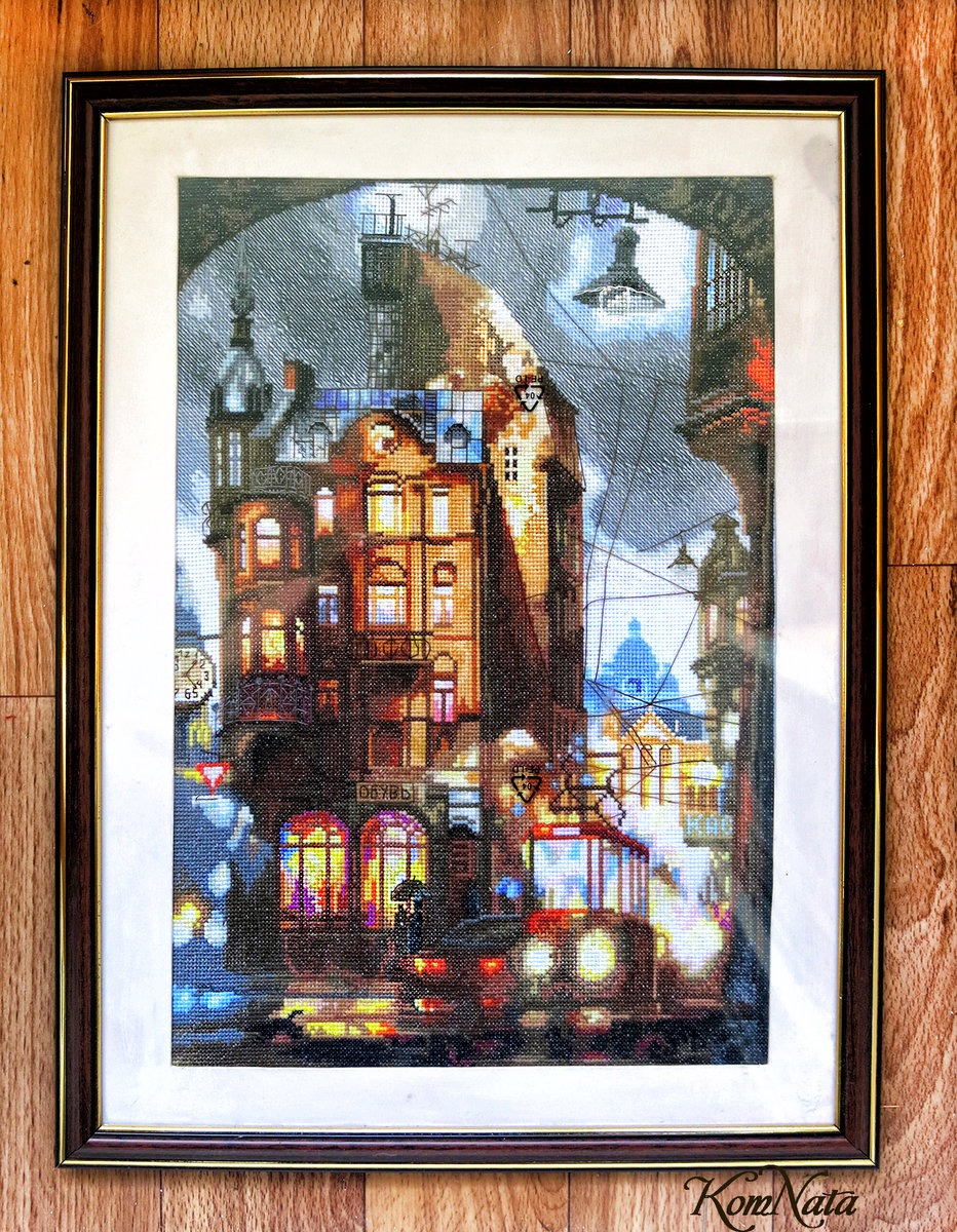 Размер в раме 30х40 см. Оформляла сама в готовую рамку.