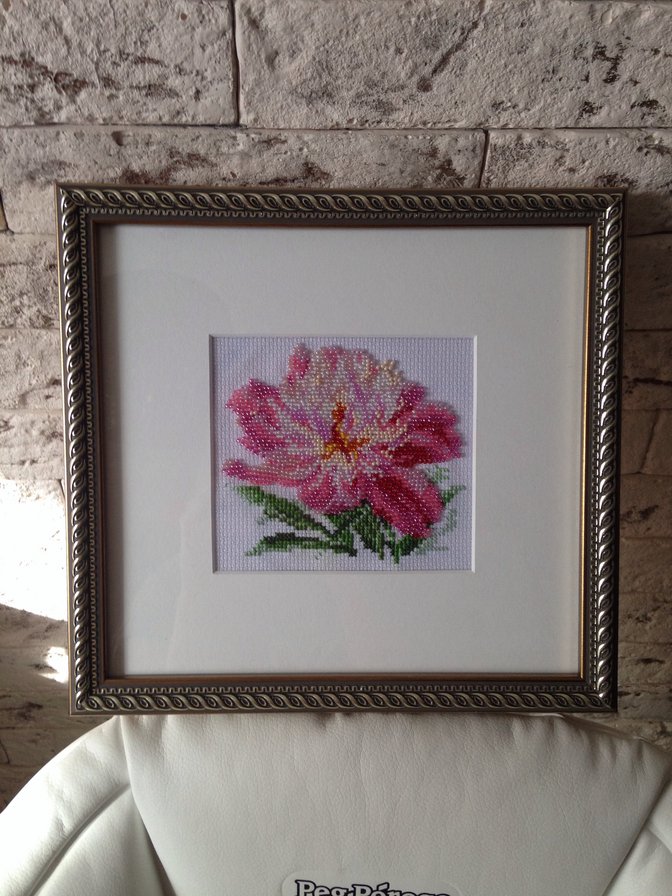 Этот пион фирмы Алиса вышивается крестиком, я реши вышить его бисером, но надо было выбирать цвета посочнее, а то он какой-то слишком бледно-прозрачный получился.