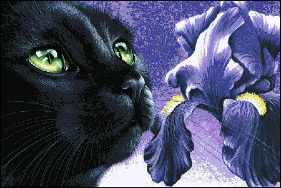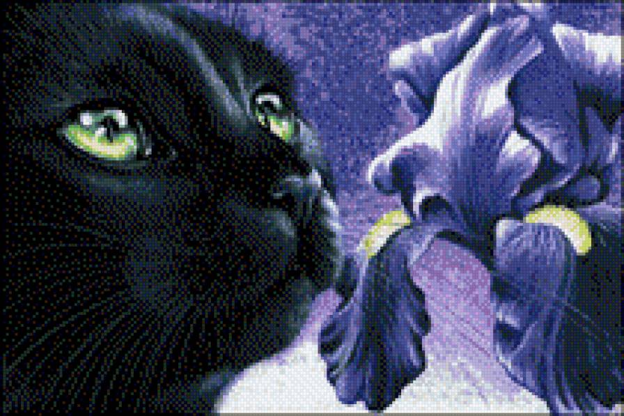 Схема вышивки «черный кот и ирис» (№1030478)