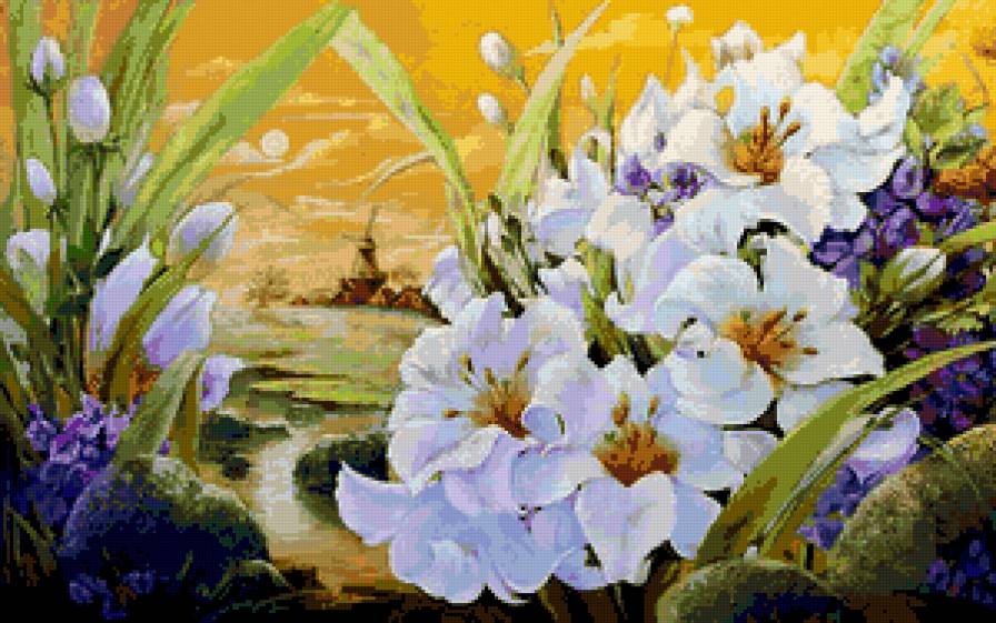 Схема вышивки «пейзаж с лилиями» (№1036695)