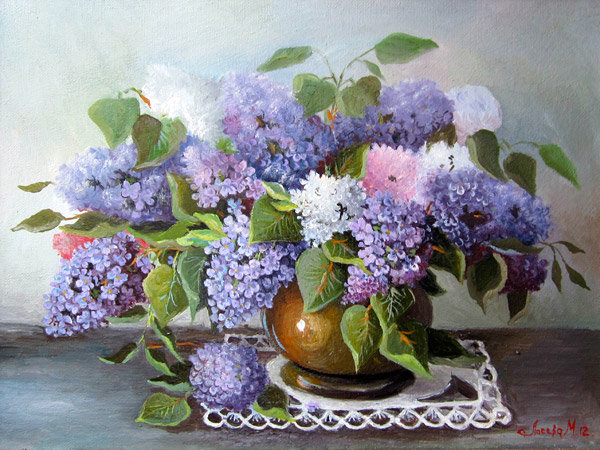 Теги: сирень, натюрморт, картина, цветы.