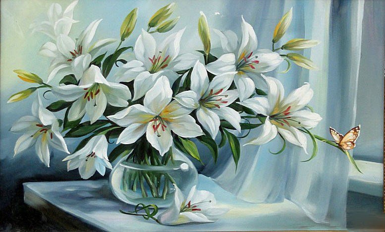 Теги: лилии, живопись, букет, цветы.