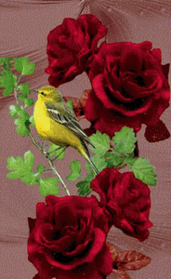 Схема вышивки «Птичка и розы» (№1090089)