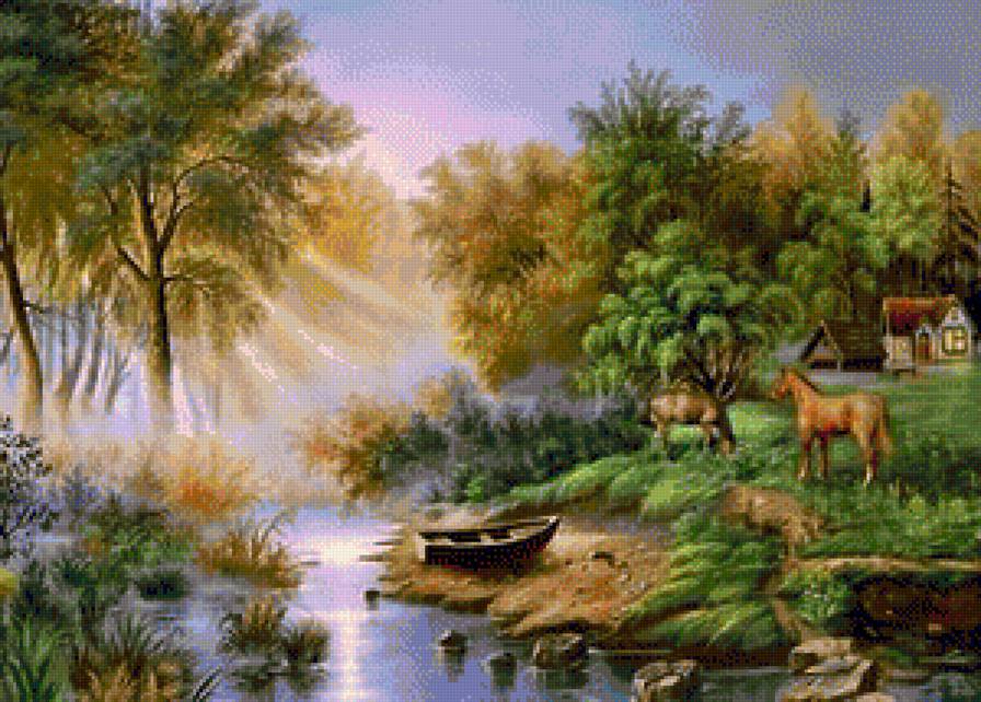 Схемы вышивки, похожие на «Домик у реки» (№1118149) по сюжету