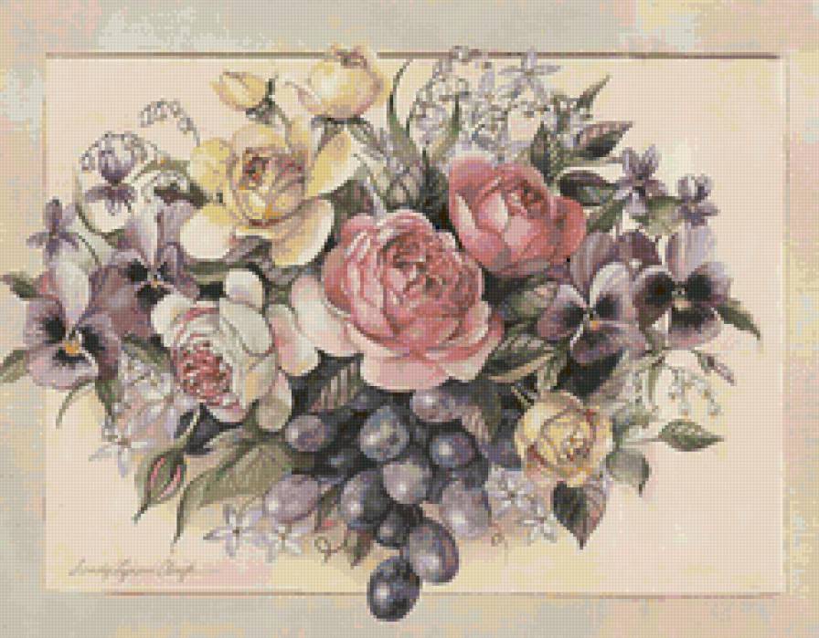 Схемы вышивки, похожие на «цветы с виноградом» (№113655) по сюжету