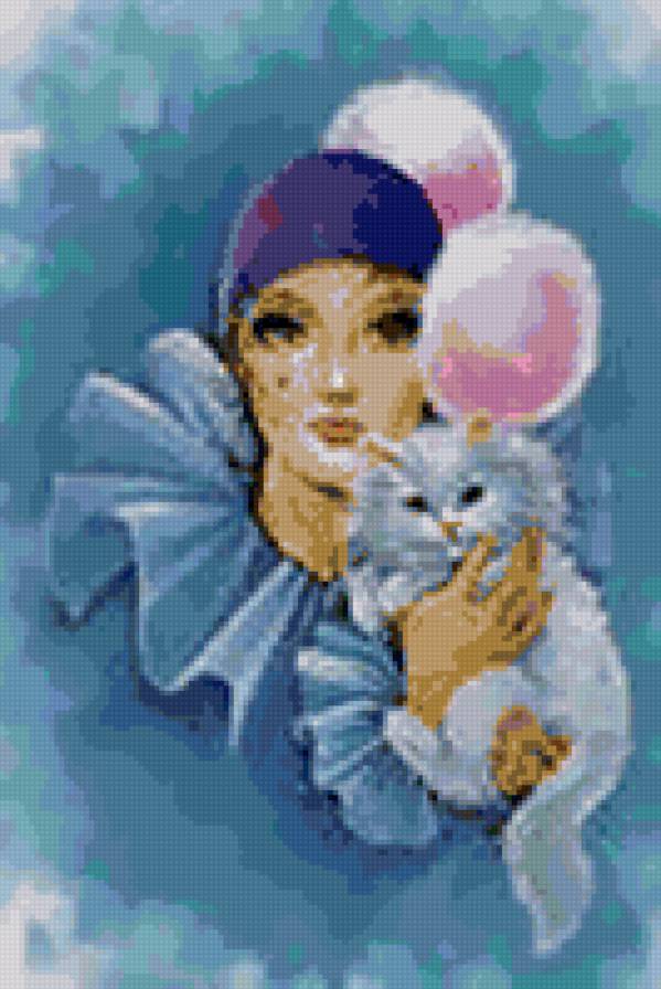 Схема вышивки «дама с котом» (№122872)