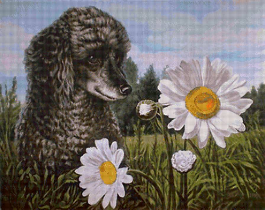 Схемы вышивки, похожие на «пудель в ромашках» (№1232714) по сюжету