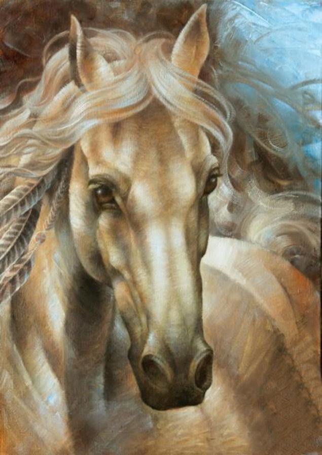 Теги: белая лошадь, кони, живопись, животные, природа, лошади.