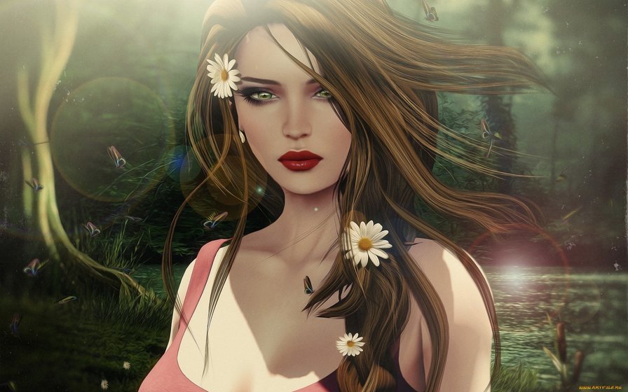 Теги: река, девушка, пейзаж.