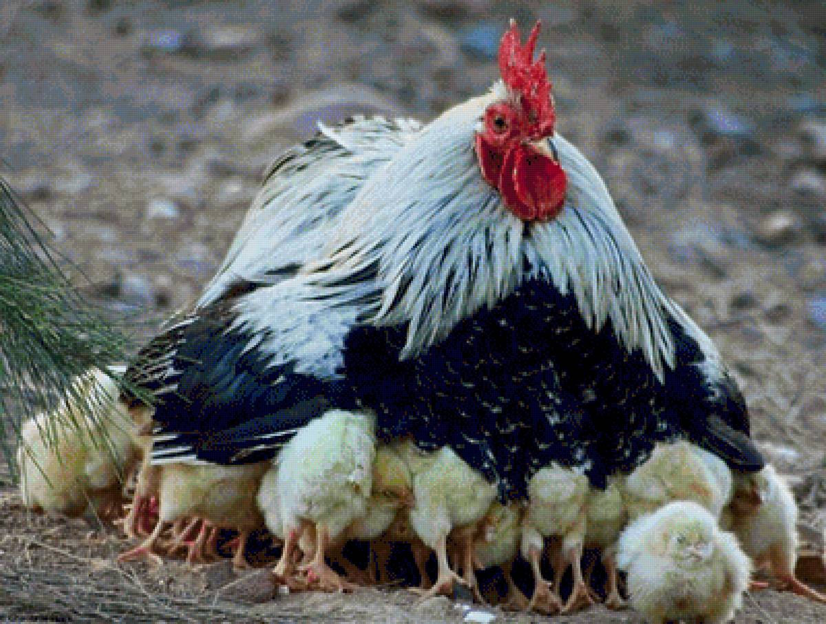Теги: курица, кот, щенок, петух, семья.