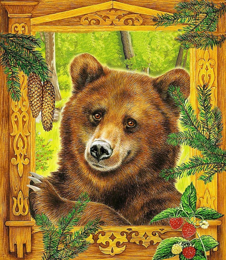 Теги: звери, деревья, животные, природа, пейзаж, медведь, медведи.