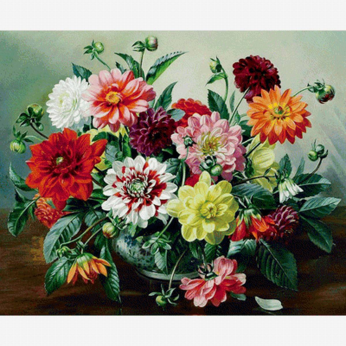 Схема вышивки «георгины в вазе» (№1498431)