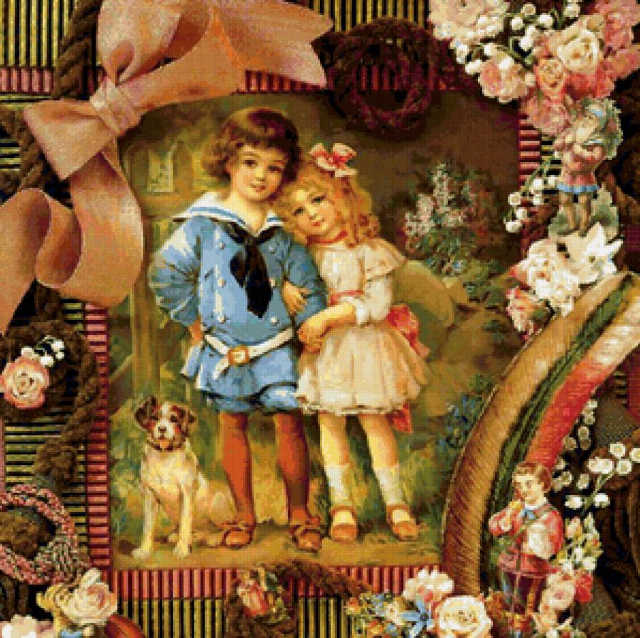 Схема вышивки «Дети (ретро открытка)» (№151613)