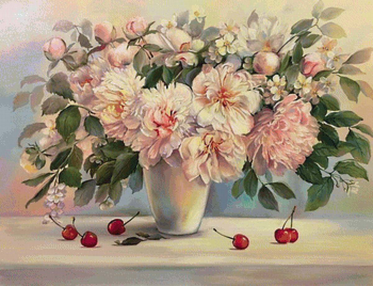 Схемы вышивки, похожие на «пионы» (№1523694) по сюжету