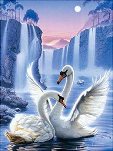 Схема вышивки «Лебеди у водопада» Лебеди у водопада